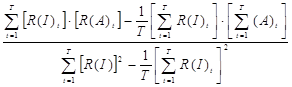 Если b < 1, то степень риска этой бумаги относительно низкая, поскольку в течение периода глубины расчета ее цена изменялась медленнее, чем рынок.