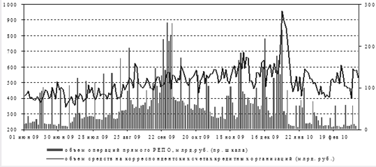 Рисунок 6 - Объем средств на корсчетах кредитных организаций и операций прямого РЕПО