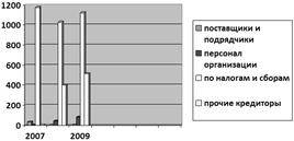 - наблюдается тенденция к увеличению кредиторской задолженности, так в 2009 г. сумма задолженности составила 1472 тыс. руб., что выше показателя 2007 г. на 508 тыс. руб., и выше показателя 2008 г. на 245 тыс. руб.