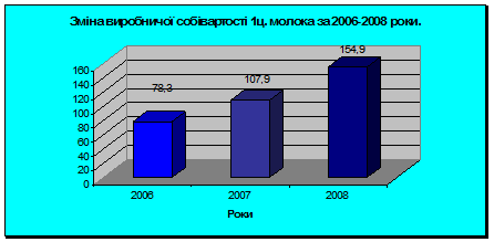 Економічна криза в аграрному секторі супроводжується значним зменшенням поголів'я корів, зниженням продуктивності худоби, зростанням собівартості продукції молочного скотарства. В результаті обсяги виробництва та споживання продукції молока з року в рік скорочуються та, як наслідок, знижується ефективність та конкурентоспроможність вітчизняного молочного скотарства [12, с.4].