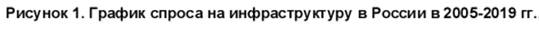 Исходя из полученных результатов и прогнозов макроэкономических показателей, был построен график спроса на инфраструктуру в 2005-2019 гг.[6]