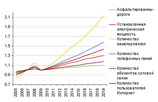 Как видно из графика, после некоторого спада, вызванного кризисом, спрос на различные элементы инфраструктуры будет увеличиваться.