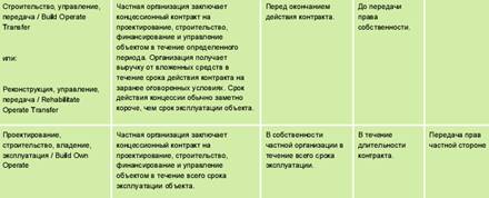 Таблица 2. Виды государственно-частных партнёрств[7] .