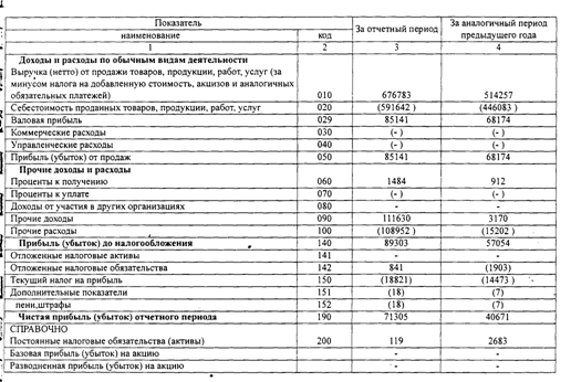 Отчет о прибылях и убытках ОАО «ВАРЗ-400» за 2009 год
