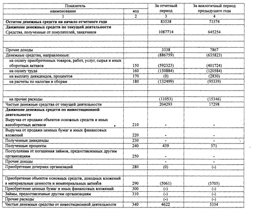 Отчет о движении денежных средств ОАО «ВАРЗ-400» за 2009 год