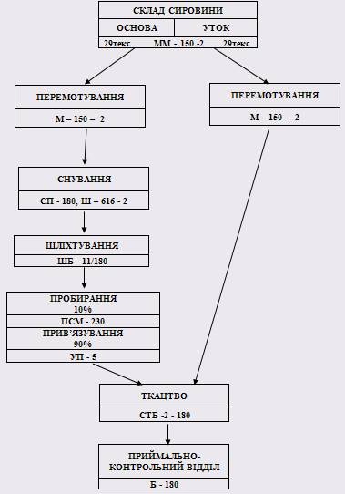 1.1 Вибір та обґрунтування схемитехнологічного процесу виробництва суворої тканини