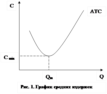 В этом случае целесообразно рассмотреть кривую средних общих издержек (см. Рис.1) – издержек, приходящихся на единицу выпускаемой продукции, то есть