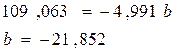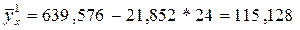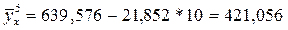 в = -21,852 – показує, що зі збільшенням об’єму випуску продукції ціна зменшується на 21,852.