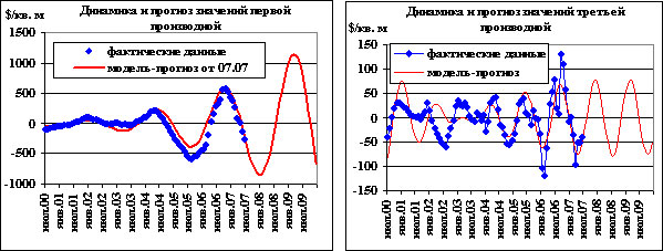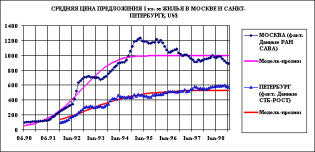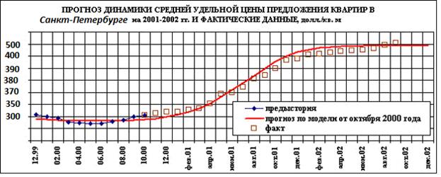 Таким образом, применение регрессионных математических моделей, опирающихся на содержательные гипотезы об экономической сущности протекающих на рынке жилья процессов, позволяют получать достаточно точные среднесрочные прогнозы. Однако, они не могут предсказать изменения ценовых трендов в долгосрочном периоде и переход к кризисному развитию рынка.