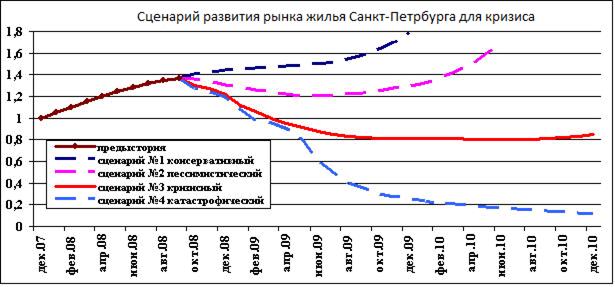Но уже в декабре 2008 года был сделан вывод о то, что фактически реализуется сценарий № 3 (кризисный).