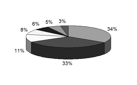 Основні конкуренти ВАТ “Київський маргариновий завод” представлені у вигляді діаграми.(рис.6), де 34% становлять виробники, що займають два і менше відсотка ринку.