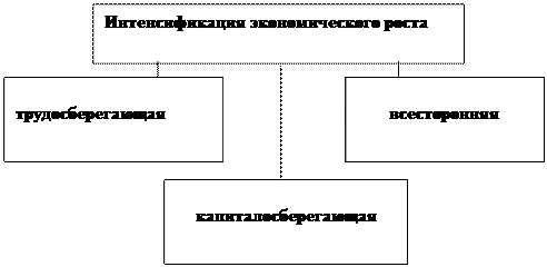 Интенсивный тип экономического роста является более сложным. Главное отличие этого типа экономического роста от экстенсивного в том, что повышение эффективности производственных факторов осуществляется на базе технического прогресса.