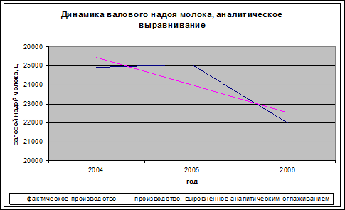 Рисунок 2 – Динамика валового надоя молока, выравнивание ряда динамики способом укрупнения периодов и способом скользящей средней