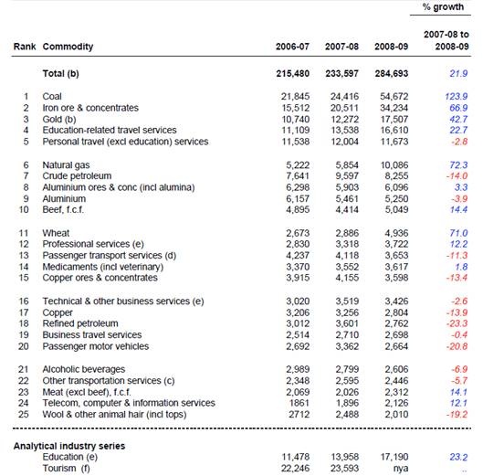 Источник : 2008-09, Composition of Trade Australia, Market Information and Research Section, Department of Foreign Affairs & Trade, November 2009