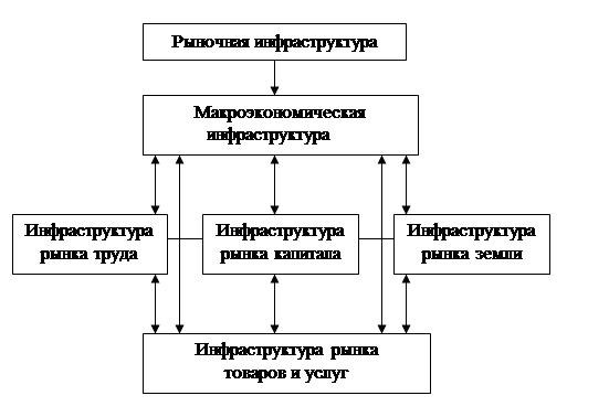 Как и всякая объективно существующая система, рынок обладает собственной инфраструктурой. Применительно к рынку (рыночной экономике) инфраструктура представляет собой совокупность организационно-правовых и экономических отношений, связывающую эти отношения при всем их многообразии в одно целое.