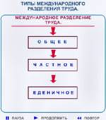 Частное международное разделение труда - это межотраслевое разделение труда, при котором страны специализируются в производстве и обмене на мировом рынке продукции различных отраслей и подотраслей промышленности или сельского хозяйства (например, легкая и тяжелая промышленность; станкостроение и автомобилестроение; скотоводство и растениеводство). При частном типе МРТ наряду с естественными факторами все большее значение приобретают технологические, квалификационные факторы; складывается международная специализация на определенных отраслях, подотраслях и видах производств.