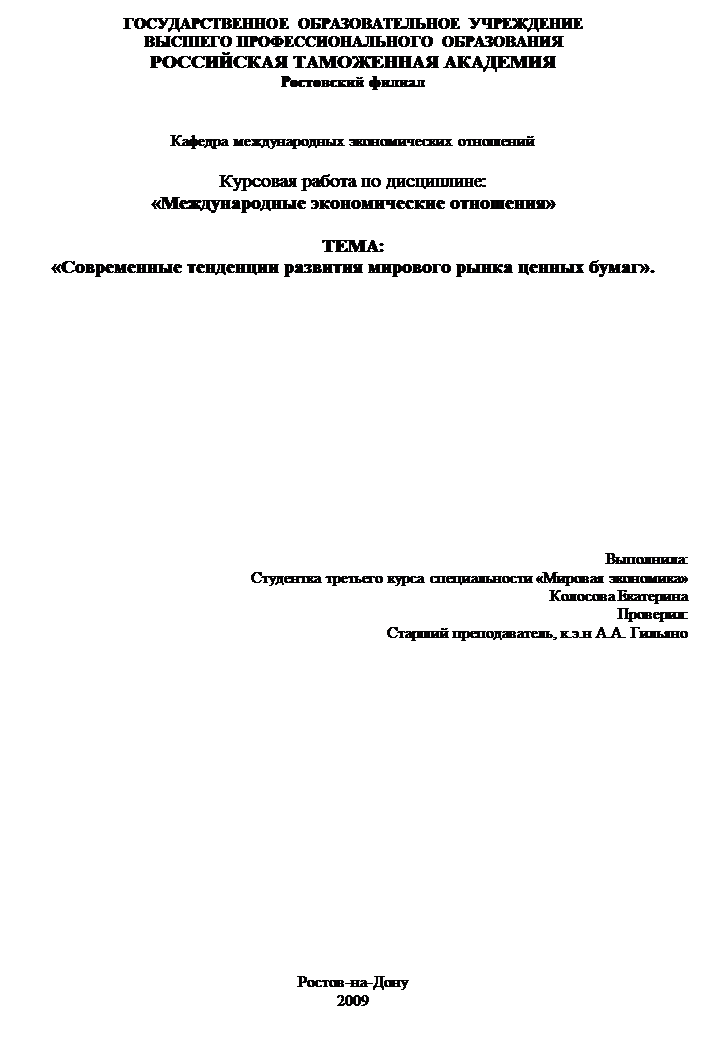 Краткое описание работы: ГОСУДАРСТВЕННОЕ ОБРАЗОВАТЕЛЬНОЕ УЧРЕЖДЕНИЕ ВЫСШЕГО ПРОФЕССИОНАЛЬНОГО ОБРАЗОВАНИЯ РОССИЙСКАЯ ТАМОЖЕННАЯ АКАДЕМИЯ Ростовский филиал Кафедра международных экономических отношений