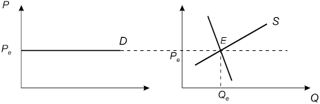 Рис. 1 иллюстрирует, что при совершенной конкуренции предложение поддерживается на равновесном уровне (Pe ). Иными словами, любой объем выпуска может быть распродан по равновесной рыночной цене. Это исключает инфляцию, безработицу, перепроизводство и другие явления экономического неравновесия.