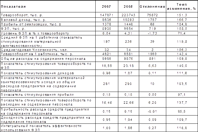 Показатели эффективности использования фонда заработной платы имеют тенденцию роста. Показатель стимулирования товарооборота увеличился на 37,7%, валового дохода – на 11,6%, материальной заинтересованности - на 3,5 %.