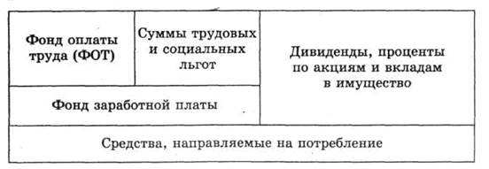 Поскольку средства на оплату труда работников входят в себестоимость продукции и формируют цену товара, государство устанавливает их структуру. Средства, направляемые на оплату труда, образуют фонд заработной платы фирмы и входят в состав средств, направляемых на потребление (рисунок 1.2). В состав планового фонда заработной платы входят фонд оплаты труда (регламентируемая часть фонда заработной платы) и сумма предоставляемых предприятием, организацией, учреждением трудовых и социальных льгот, включая материальную помощь, выплачиваемую из чистой прибыли. Кроме фонда заработной платы в состав средств потребления входят доходы (дивиденды, проценты) по акциям членов трудового коллектива и вкладам членов трудового коллектива в имущество предприятия, планируемые к выплате работникам фирмы.