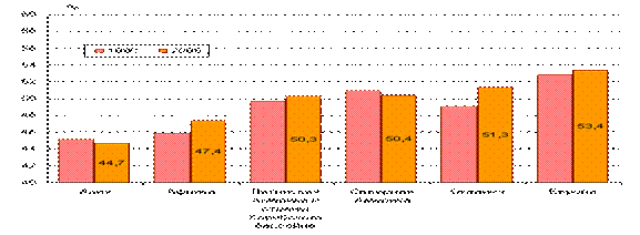 9. Расширение масштабов участия России в международной трудовой миграции. Привлечение трудящихся мигрантов становится неотъемлемым элементом рынка труда в Российской Федерации. В 1997г. численность иностранной рабочей силы здесь составила 240 тыс. человек. Общая численность трудовых иммигрантов (легальных и нелегальных) в России оценивается в 400500 тыс. человек. (25 с.146)