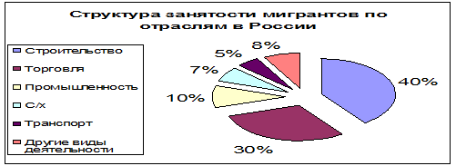 Основные причины привлечения иностранных работников на российские предприятия это нехватка рабочих отдельных профессий и специальностенепривлекательность рабочих мест для населения, нехватка трудовых ресурсов. Иностранные рабочие чаще используются на предприятиях добывающей промышленности, в строительстве и в сельском хозяйстве. Основной поток иммигрантов идет из Украины и Белоруссии в Западную Сибирь, Центральный и Центрально-Черноземный районы, на Северный Кавказ, в Восточную Сибирь. Россия использует рабочую силу из стран дальнего Зарубежья Вьетнама, Китая, Турции. В Москве работают иностранные рабочие и специалисты из 78 стран мира. (14, с.305)
