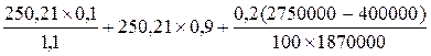 K = 2500000 + 2500000×0,10 = 2750000 руб.