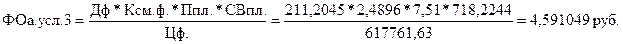 DVВП (DЦ)={(DФОа усл1- ФОа план) * УДа.факт } *ОПФфакт | 0,00991236*127542=1264,2431 |