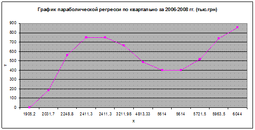 На основе найденных параметров найдем уравнение параболической регрессии: