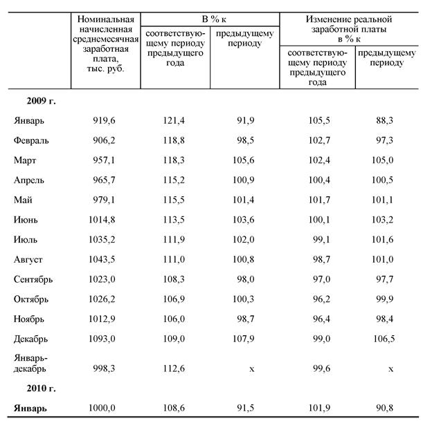 | Реальная начисленная заработная плата, в процентах к предыдущему году | 95,0 | 112,0 | 129,6 | 107,9 | 103,2 | 117,4 | 120,9 | 117,3 | 110,0 | 109,0 | 99,63) |