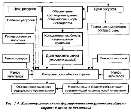 Надо отметить неразрывную связь современной внутринациональной конкуренции с международной, а современные процессы глобализации обусловливают тот факт, что международная конкуренция не только усиливает проявления национальной конкуренции, но часто влияет на характер ее проявлений.