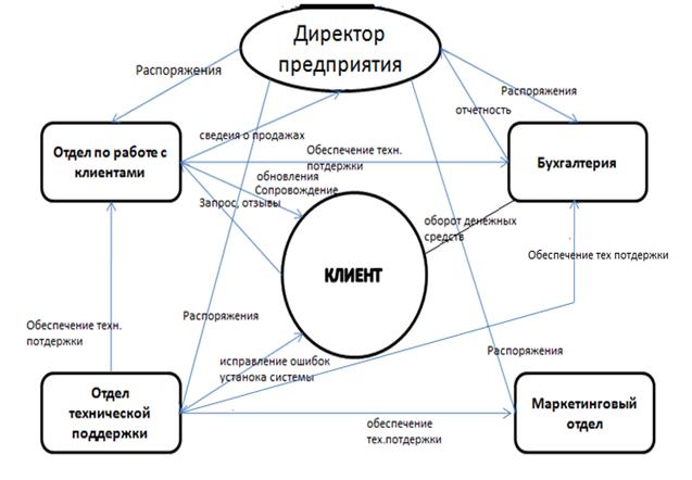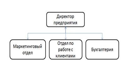 Во главе предприятия стоит директор. Он является координатором для начальников отделов и главбуха. Также он выбирает стратегию развития, определяет цели и задачи, занимается разработкой и осуществлением плана реализации.
