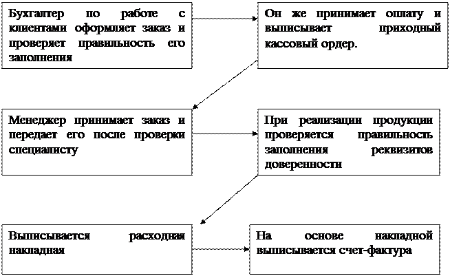 Но так как масштабы деятельности организации не велики, то строгий контроль за операциями по реализации продукции не так уж необходим. Работники, осуществляющие отпуск готовой продукции, самостоятельно следят за правильностью выписки документов.