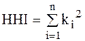 Показатель рассчитывается как суммаквадратов рыночных долей (в процентах) всех субъектов рынка в общем его объеме: