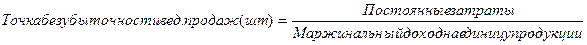 безубыточности продаж