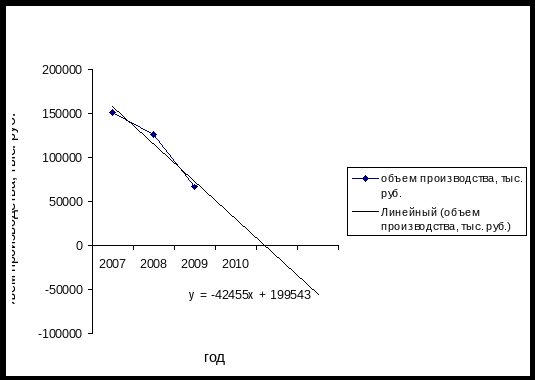 Анализ производственно-хозяйственной деятельности ООО «Земетчиноавтодор» показывает, что за анализируемый период наблюдается снижение объемов производства на 29,9% и 83,6% соответственно в 2008 и 2009 гг., что оказывает непосредственное влияние на выручку и прибыль организации.