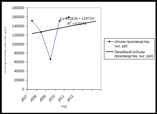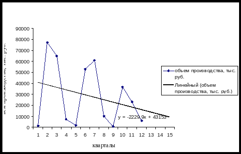 В соответствии с трендом объем производства снижается, соответственно и потребность в материальных ресурсах сокращается, что приводит к снижению загруженности основных производственных фондов. Поэтому, чтобы обеспечить дальнейшее функционирование предприятия необходимо, выполнять другие виды работ на сумму: