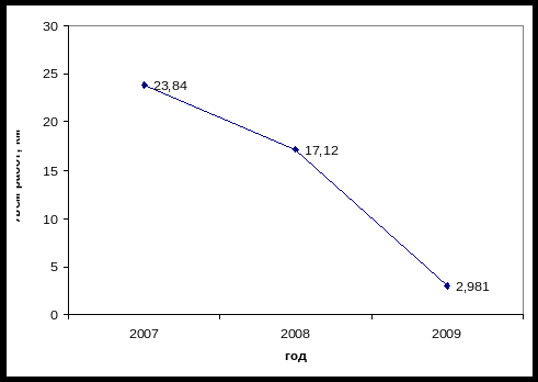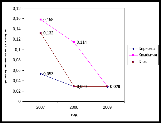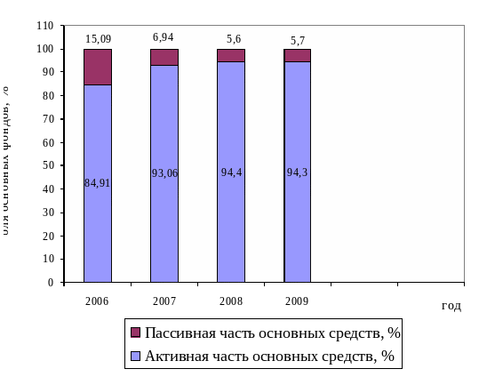 Из расчетов видно, что изношенность основных средств в 2007г. составляла 13%, а коэффициент годности составил 87%, что является хорошим показателем для нормальной работы предприятия. Но на протяжении анализируемого периода данный показатель увеличился на 7% в 2008 г. и на 13% в 2009 г. (20% и 33% соответственно), что говорит об ухудшении состояния основных средств и их износе.