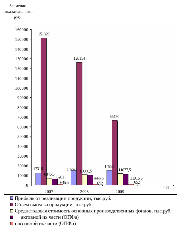 Увеличение стоимости ОПФ в 2008 году обусловлено поступлением транспортных средств на сумму 2287 тыс. руб., а в 2009 году выбыло транспортных средств на 407 тыс. руб и были приобретены машины и оборудование на 154 тыс. руб., что в результате привело к снижению стоимости ОПФ на 5,5 % (253 тыс. руб.)