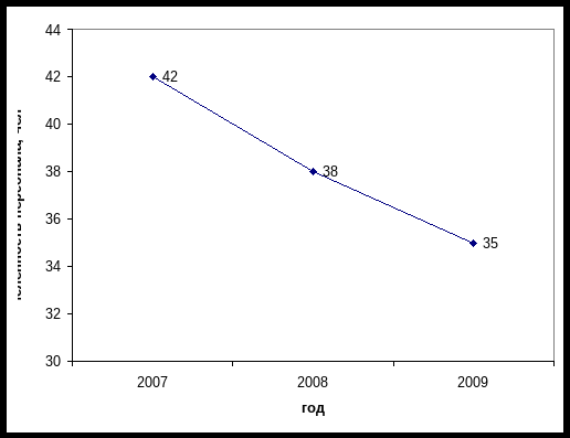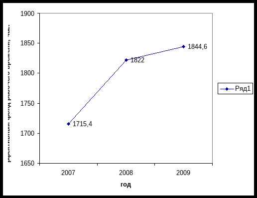Коэффициент использования рабочего времени по годам составил: для 2007 года – 0,82, для 2008 года – 0,85, для 2009 года – 0,84. если соотнести эти коэффициенты между собой, то полученные индексы будут характеризовать динамику изменений в использовании номинального фонда рабочего времени. Эти индексы будут для 2008 года – 1,036, а для 2009 года – 0,987. Здесь обнаруживается недовыполнение плана. Причина невыполнения плана по целодневному фонду рабочего времени заключается в увеличении его потерь. Эти потери рабочего времени составили 4 дня.