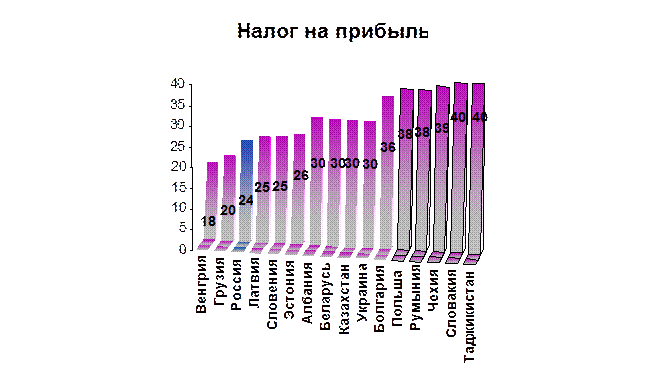 - установление налоговых ставок на уровне ниже среднемировых, отказ от прогрессивной системы налогообложения для основной массы получателей доходов;