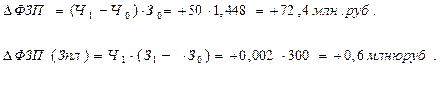 2) На предприятии произошло повышение средней ЗП на 0,002 млн.руб., учитывая, что фактическая численность составляет 300 чел. ,произошел рост расходов по ФЗП на сумму +0,6 млн.руб.( +0,002*300).