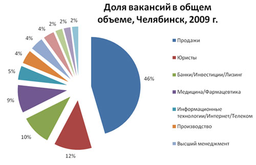 Рисунок 3 – Доля вакансий в общем объеме (2009 – первый квартал 2010 гг. г.Челябинск)