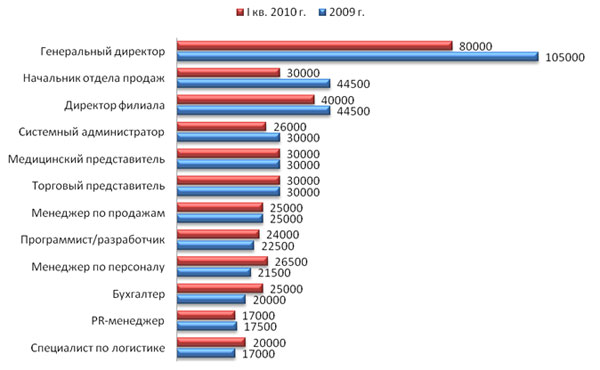 Резкий рост резюме в I квартале (на 70%) связан с «отложенным спросом». По сравнению с IV кварталом 2009 года прирост предложений от компаний составил 23%. По сравнению с I кварталом 2009 года количество вакансий возросло на 38%. В 2010 году увеличился спрос на специалистов Медицинской и ИТ сфер. Уровень зарплат генеральных директоров (в предложениях от работодателей) с начала года снизился на 20%