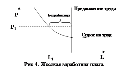 Слишком высокий уровень заработной платы в стране может стать потенциальной причиной безработицы. Для приведения в соответствие спроса и предложения на рынке труда заработная плата должна обладать определенной гибкостью. Однако на практике формы и системы заработной платы применяются негибкие, традиционные повременная и сдельная. Безработица, которая является результатом жесткой заработной платы называется безработицей ожиданий . Она возникает потому, что при данном уровне заработной платы предложение труда превышает спрос и не происходит ее снижение.