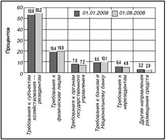 Основным направлением размещения средств банков являются кредиты субъектам хозяйствования – резидентам (рисунок 3.5).