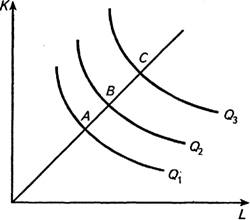 Рассмотрим случай неизменной отдачи от масштаба производства. Такая отдача имеет место, если фирма увеличивает объем производства, используя традиционные, широко применяемые технологии, оборудование, материалы, рабочую силу данной квалификации. Другими словами, фирма увеличивает объем используемых ресурсов при неизменном их качестве. Удвоение выпуска получают благодаря удвоению объемов потребляемых ресурсов. Затраты на производство единицы продукции остаются прежними.