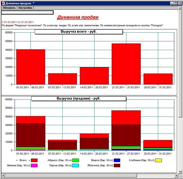 Отчет предназначен для получения информации о динамике продаж за выбранный период. Период анализа устанавливается в настройках отчета.