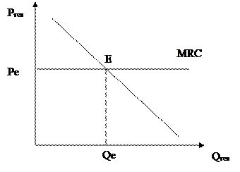 На рисунке 3 видно, что равенство МRP и МRС достигается в точке Е, чему соответствует объем ресурса QЕ.