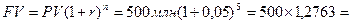 Теперь определим доход, который можно было бы получить при вложении 500 млн. руб. в банк на 5 лет при ставке 5% годовых. Он составит: